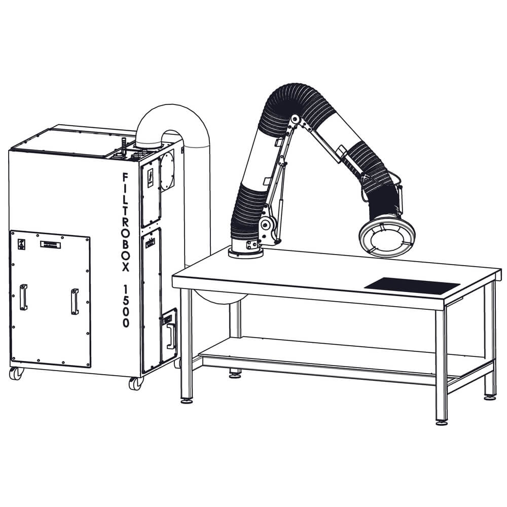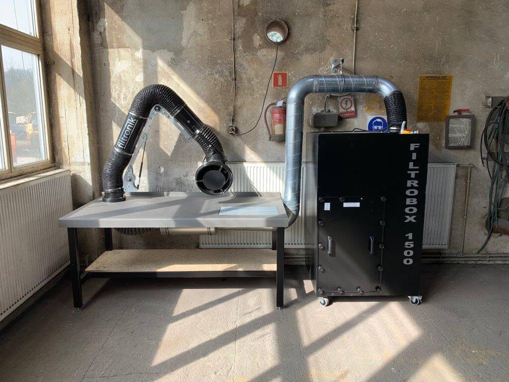 Stół typu CYKLOP-2 pełni funkcję stanowiska do prac ślusarsko-spawalniczych. Dzięki wyposażeniu go w ramię odciągowe Solid-RX-2 doskonale nadaje się do wszelkich prac ślusarskich w tym do spawania włącznie.