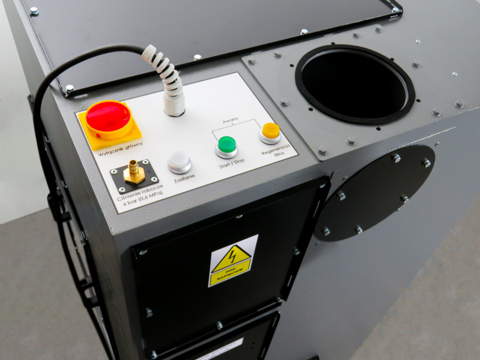 Urządzenie Filtrobox 1500 zostało wyposażone w dwa otwory ssące o średnicy 160mm, jeden umieszczony w górnej płycie urządzenia, drugi w ścianie bocznej.