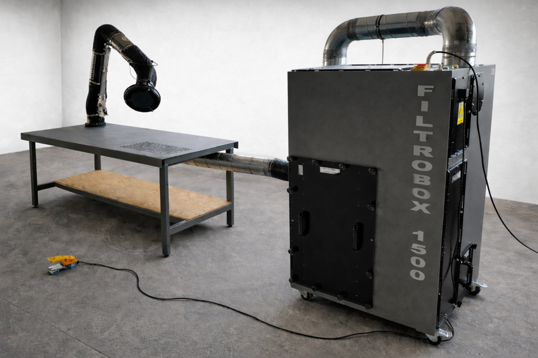 Stanowisko do prac szlifiersko spawalniczych typu Sztorm z urządzeniem filtrującym Filtrobox 1500 Max